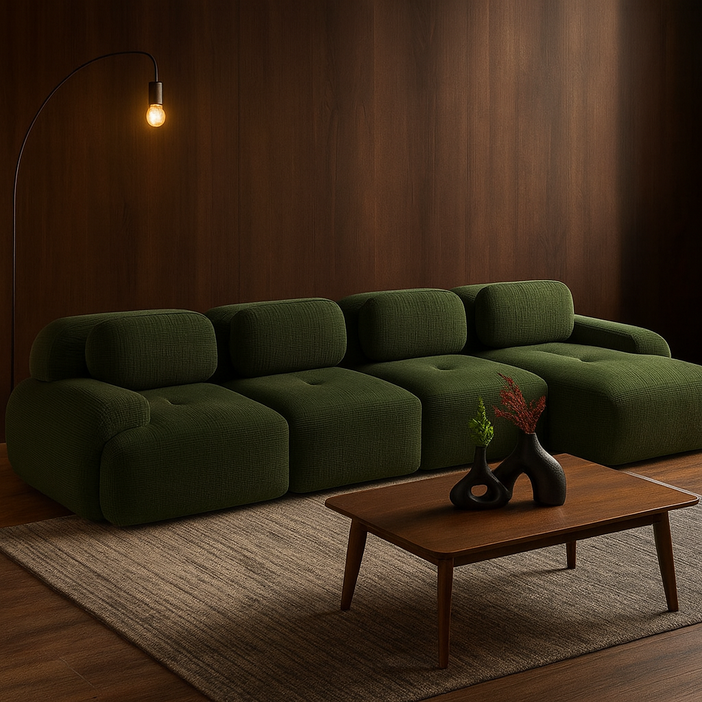Résultat : un canapé où chaque moment devient un instant de détente, que ce soit pour lire, recevoir ou simplement s’allonger.