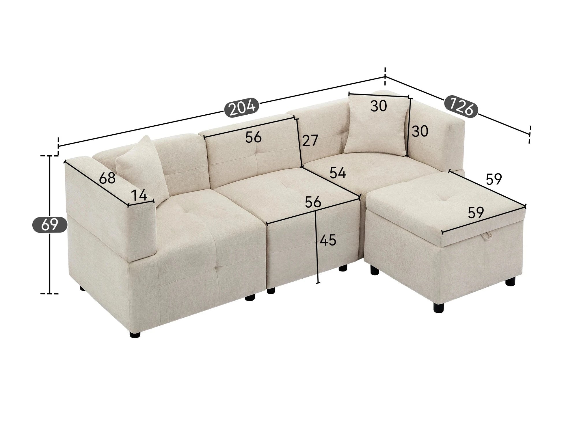 • Type : Canapé 3 places modulaire avec pouf de rangement
