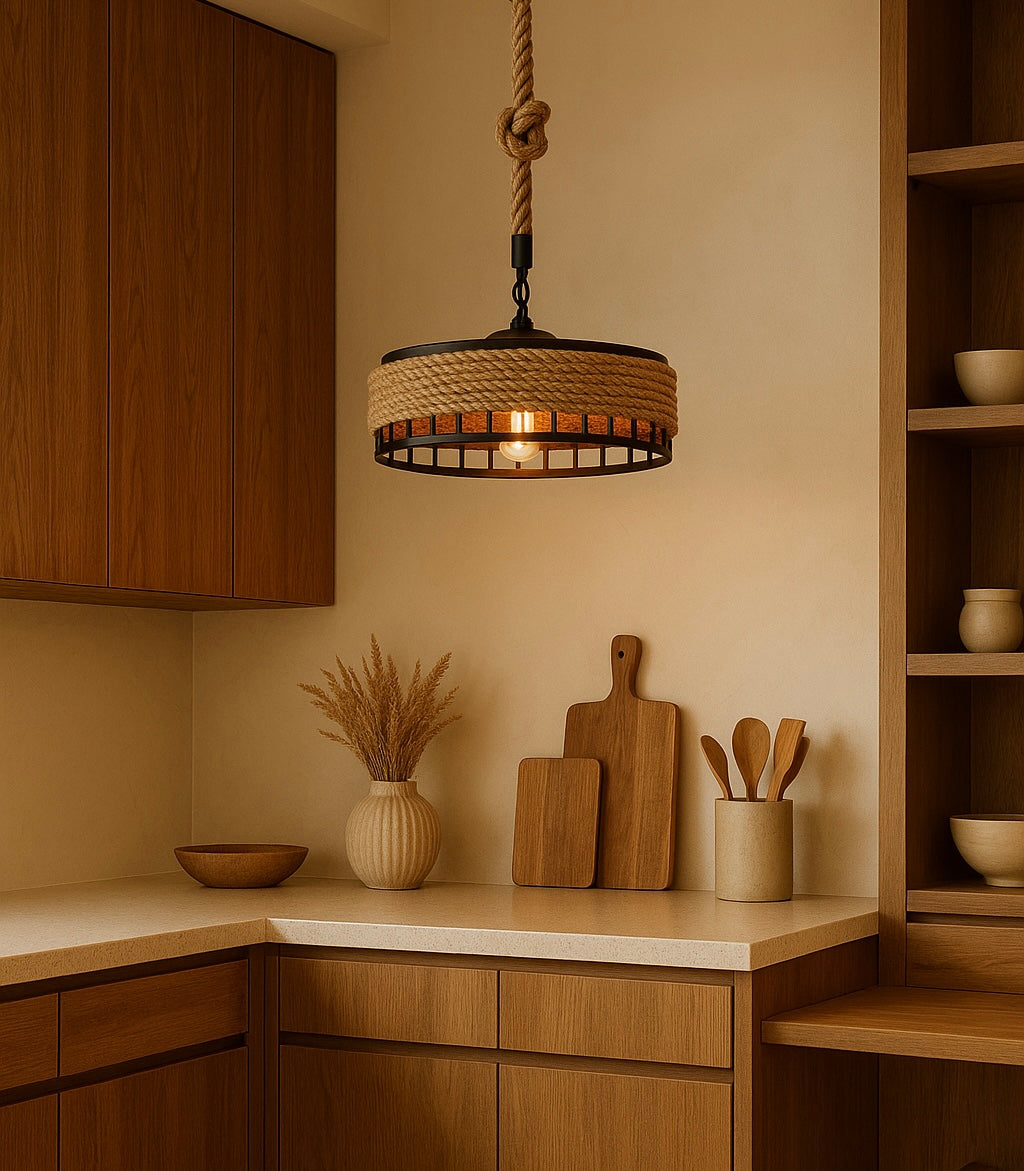 Suspension ronde en fer et corde de chanvre – Ayumu