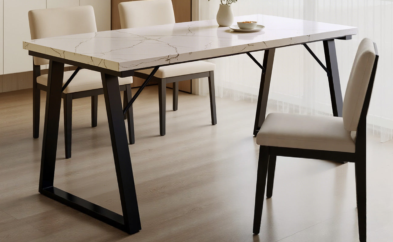 Rin incarne la philosophie du design moderne : des lignes nettes, une forme simple, une présence équilibrée. Son plateau rectangulaire à l’aspect bois ou marbre mat apporte une élégance sereine, tandis que ses pieds en métal noir rendent l’ensemble stable, graphique et contemporain. À mi-chemin entre le minimalisme scandinave et la sobriété japonaise, elle devient une pièce maîtresse discrète mais affirmée, capable d’harmoniser un intérieur sans jamais l’alourdir.