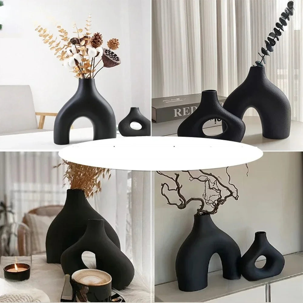 Vase céramique noir mat minimaliste (lot de 2) – Rei